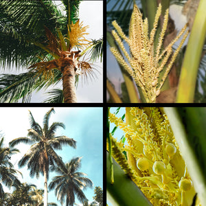 The coconut palm is one of the most useful trees in the world, and referred to as the 'Tree of life'. It is the cultural icon of the tropics. Most coconut palms begin flowering at around four to six years old, producing a canoe shaped sheath up to 3 feet long called ‘spathe’ (large bud).